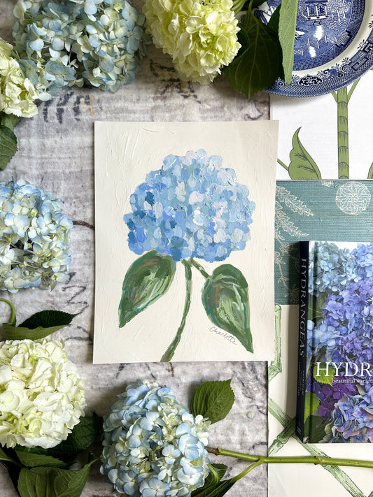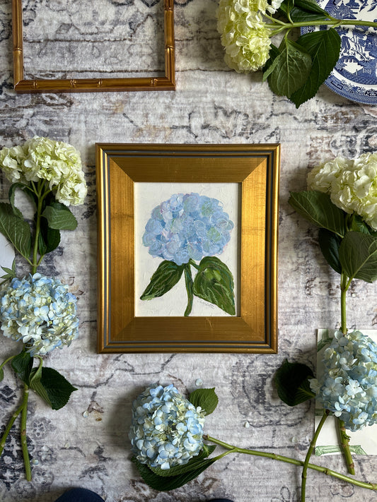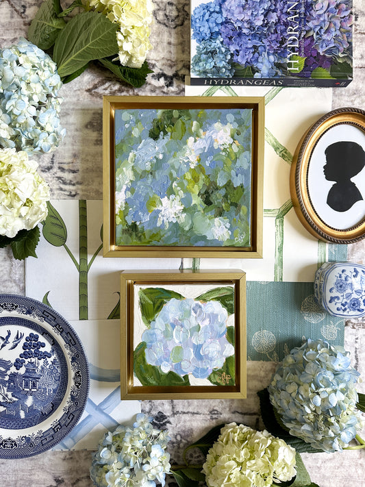 "Pink Hydrangea II" a 6x6 framed original painting by Charlotte Pottieger