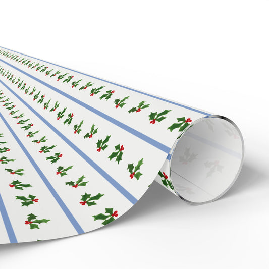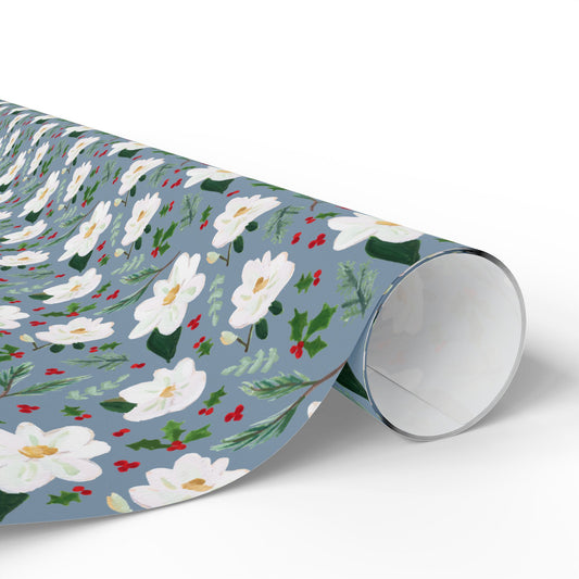 Magnolia & Holly Wrapping Paper – Dusty Blue
