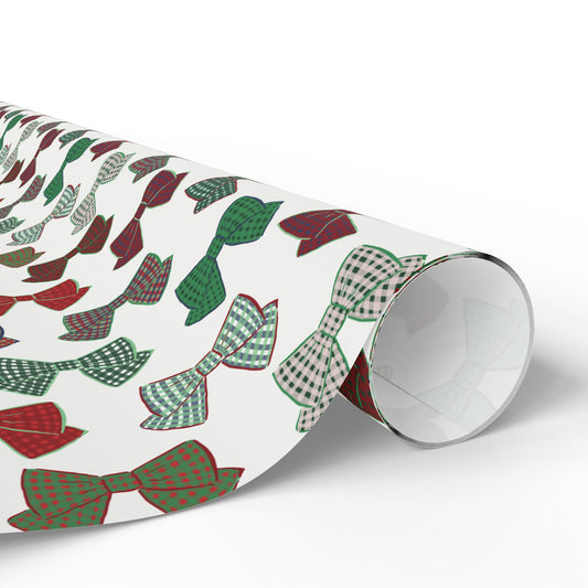 Preppy Plaid Bows – White Wrapping Paper