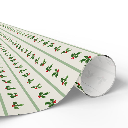 Holly Stripe Wrapping Paper - Sage Green