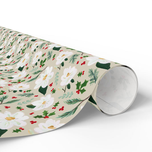 Magnolia & Holly Wrapping Paper - Beige