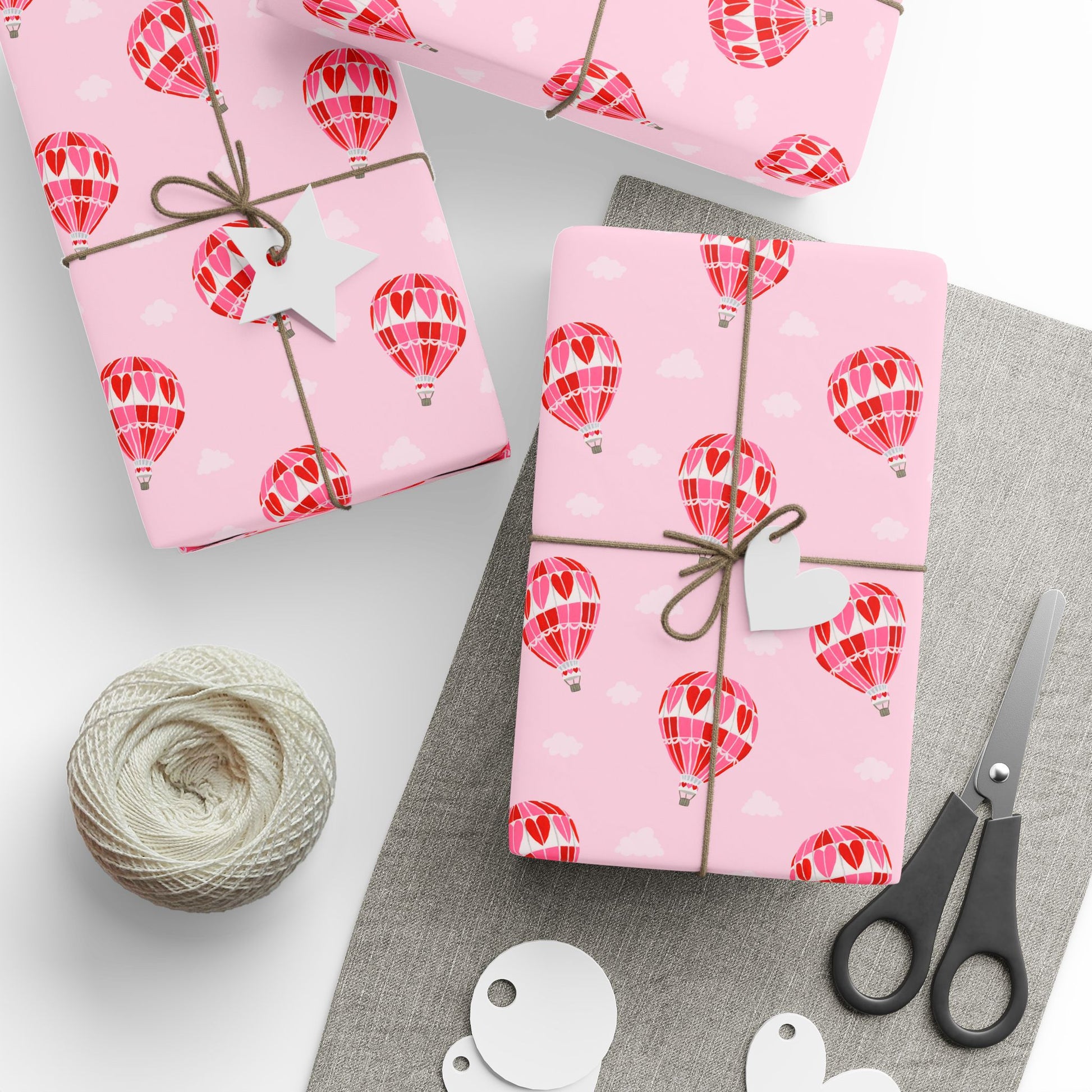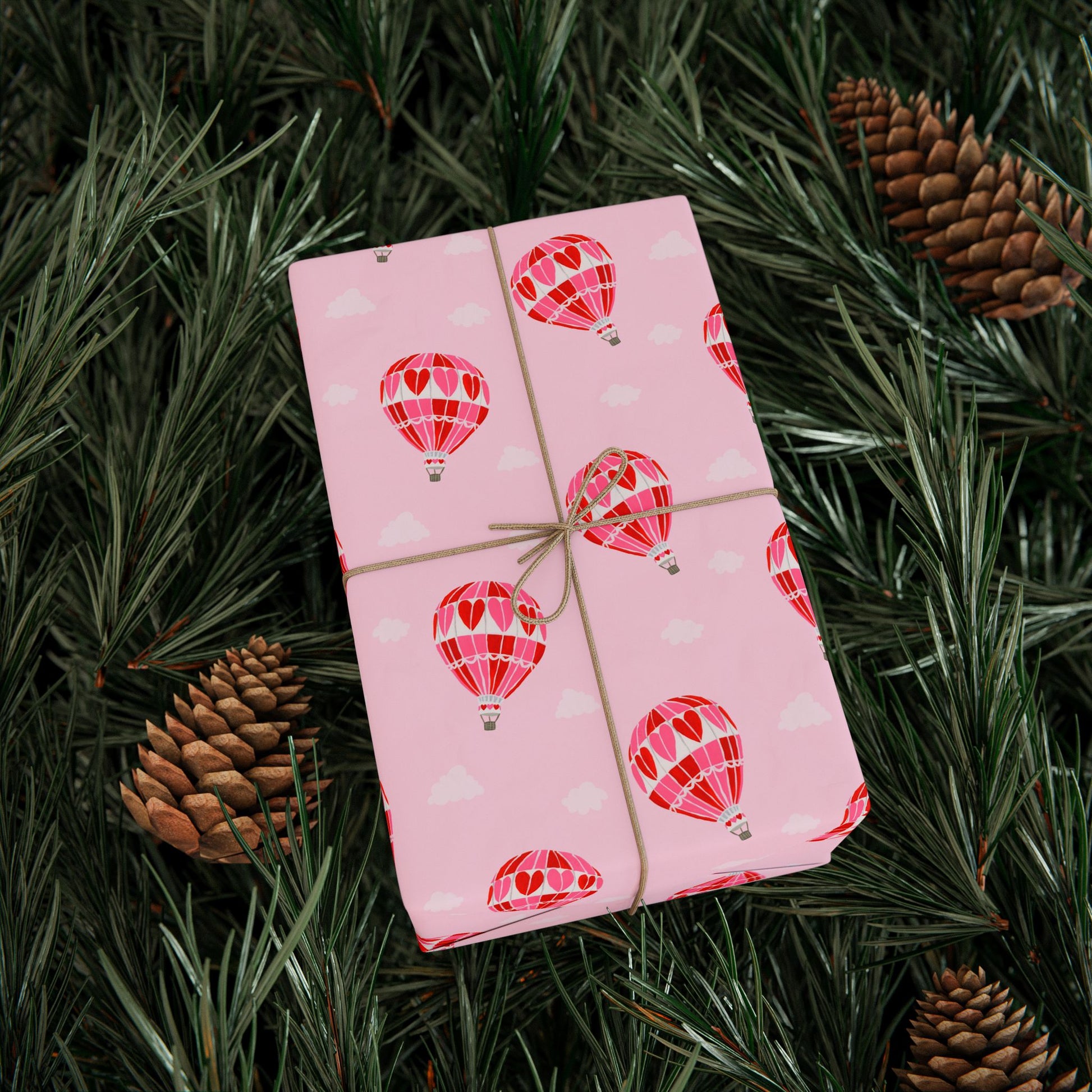 hot air balloon wrapping paper, pink valentine wrapping paper, heart wrapping paper, hand-painted gift wrap, whimsical wrapping paper, romantic gift wrap, Charlotte Pottieger wrapping paper