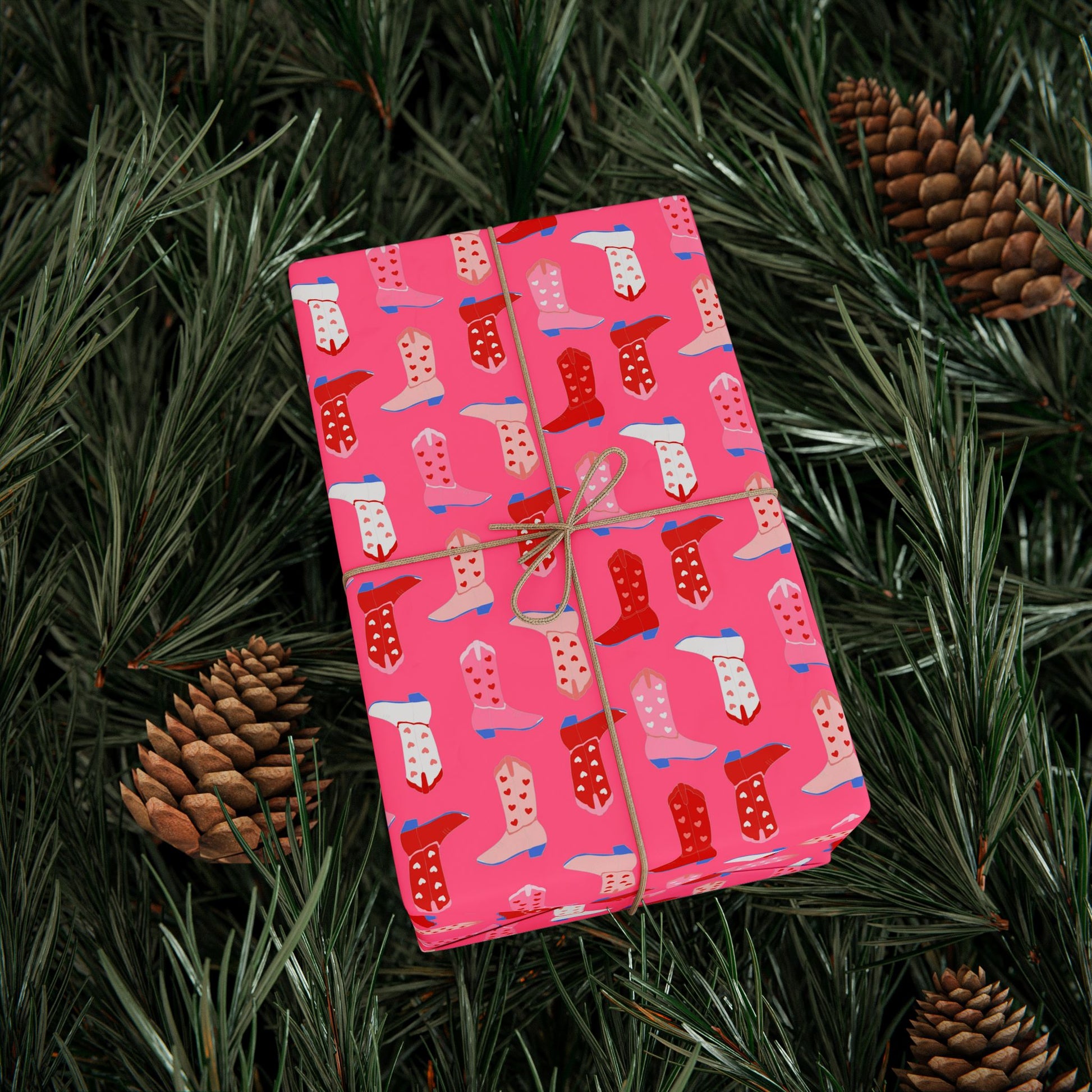 Love Struck Cowboy Boots Wrapping Paper – Bright Pink