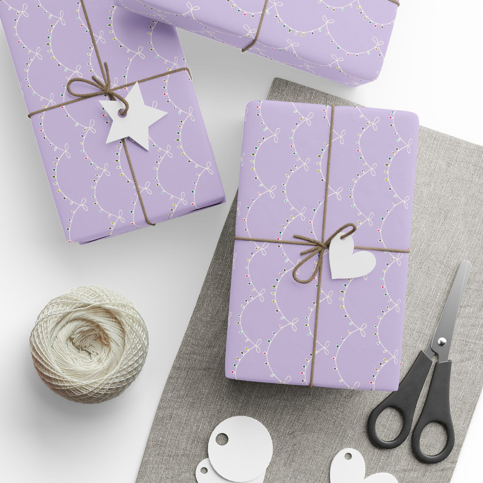 Merry & Bright Christmas Lights Wrapping Paper – Lavender