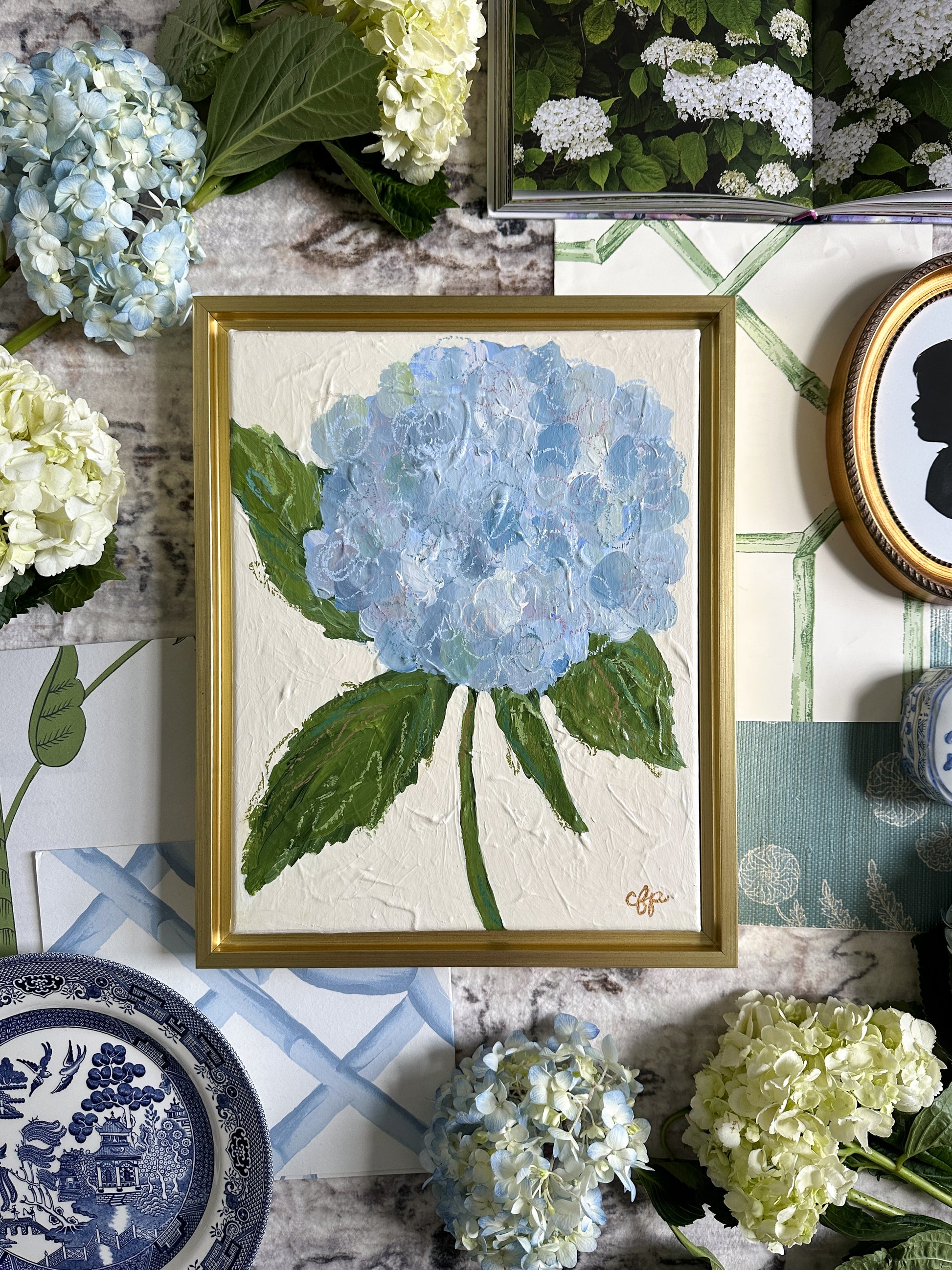 A celebration of texture, light, and the fleeting beauty of summer. Endless Summer I captures the delicate detail of a single hydrangea bloom—each petal thoughtfully painted to evoke the softness of the flower and the ease of the season. Set against a warm cream background and framed in a gold float frame, this piece invites the memory of slow mornings, ocean breezes, and golden-hour strolls.
